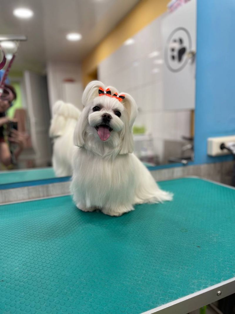 Первым заводчик подстригает питомцу когти, моет и сушит феном приучая к процедурам. К грумеру необходимо обратиться после постановки всех обязательных прививок, спустя 14 дней после крайней вакцинации в 4‑х месячном возрасте.